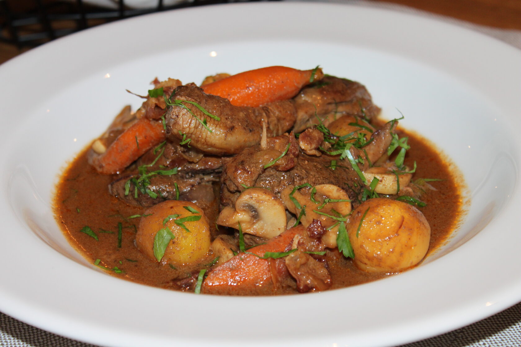 Традиционно главным блюдом этого дня является - Петух в вине Coq au vin